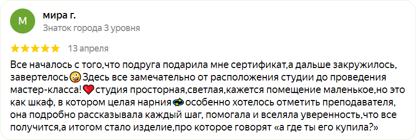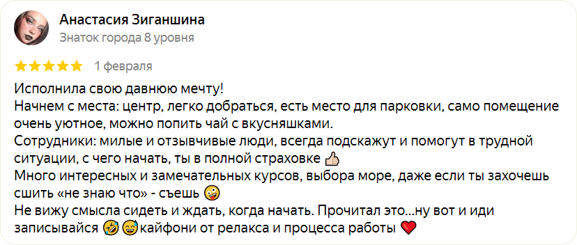 Опыт работы: 8 лет шьет белье и преподает курсы.